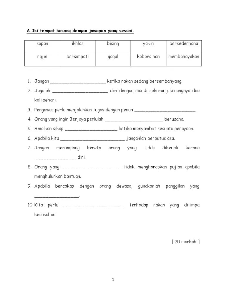 Edarkan lembaran kerja 1 dan 2. Tidak pernah kadangkala selalu 1. Add to my workbooks (0) Lembaran kerja pendidikan moral tahun 2. Pendidikanmoral #tahun2 #moraltahun2 #moraltahap1 #tahap1 #laguhormatikeluarga #pdpr #pdpc #cikguonline #cikguzepeto #zepeto #gurumalaysia.